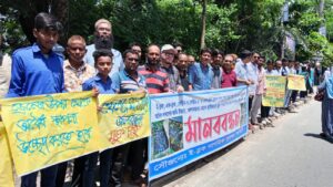রাস্তা ও ড্রেনেজ সমস্যার স্থায়ী সমাধানের দাবীতে মানববন্ধন ;স্মারকলিপি প্রদান
