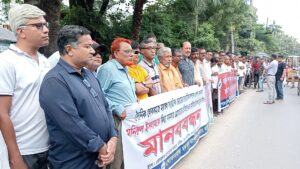 মিথ্যা মামলায় সাংবাদিক হয়রানির প্রতিবাদে যশোরে মানববন্ধন