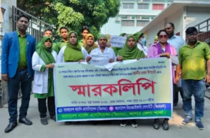 নার্সিং অধিদপ্তর একীভূতকরণের প্রতিবাদে যশোরে নার্সদের মানববন্ধন