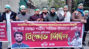 হাদির হত্যাকারীদের বিচারের দাবিতে যশোরে ‘মুক্তি মঞ্চের’ বিক্ষোভ