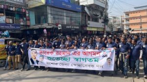 যশোরে তারেক রহমানকে স্বাগত জানিয়ে স্বেচ্ছাসেবক দলের মিছিল