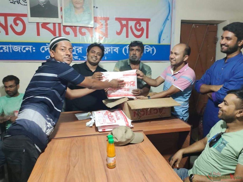 প্রেস ক্লাবের সভাপতি ও জাতীয় দৈনিক আজকালের খবর পত্রিকার উপজেলা প্রতিনিধি আব্দুল আলীম সাচ্চু’র সভাপতিত্বে আয়োজিত অনুষ্ঠানে উপস্থিত ছিলেন প্রেস ক্লাবের সহ-সভাপতি ও জাতীয় দৈনিক সকালের সময় পত্রিকার দৌলতপুর উপজেলা প্রতিনিধি মাসুদুর রহমান মাসুদ,প্রেস ক্লাবের সহ-সভাপতি ও জাতীয় অপরাধ তথ্য চিত্র স্টাফ রিপোর্টার আহসান হাবীব লেলিন ,সাধারণ সম্পাদক ও আনান্দ টেলিভিশনের কুষ্টিয়া জেলা প্রতিনিধি ফিরোজ কায়সার, যুগ্ন সাধারণ সম্পাদক ও এশিয়ান টেলিভিশনের দৌলতপুর উপজেলা প্রতিনিধি সোহানুর রহমান শিপন, যুগ্ন সাধারণ সম্পাদক ও জাতীয় দৈনিক বাংলাদেশের আলো পত্রিকার দৌলতপুর উপজেলা প্রতিনিধি হেলাল উদ্দিন, সাংগঠনিক সম্পাদক ও জাতীয় দৈনিক জবাবদিহি পত্রিকার কুষ্টিয়া জেলা প্রতিনিধি রাকিব হাসান, মহিলা বিষয়ক সম্পাদিকা মারুফা ইয়াসমিন সরুভী , প্রচার ও প্রকাশনা সম্পাদক ও জাতীয় দৈনিক গণকণ্ঠ পত্রিকার দৌলতপুর উপজেলা প্রতিনিধি মোঃ সম্রাট আলী, সাংস্কৃতিক ও ক্রিয়া সম্পাদক ও দৈনিক আরশীনগর পত্রিকার প্রতিনিধি মিল্টন আহমেদ, দপ্তর সম্পাদক ও জাতীয় দৈনিক যায়যায়কাল পত্রিকার দৌলতপুর উপজেলা প্রতিনিধি মনিরুজ্জামান মুন্না,নির্বাহী সদস্য ও দৈনিক আজকের সূত্রপাত দৌলতপুর প্রতিনিধি আশিক ইসলাম, সদস্য ও জাতীয় দৈনিক সোনালী খবরের দৌলতপুর প্রতিনিধি আসিফ ইকবাল , দৈনিক পদ্মা গড়াই এর দৌলতপুর প্রতিনিধি ইসলাম অপু ইসলাম জাতীয় দৈনিক আজকের আলোকিত সকালের দৌলতপুর প্রতিনিধি প্রান্ত মোল্লা, আরিফুল ইসলাম,মুছাবুল হক, আব্দুর রহমান,ইমন সহ অত্র প্রেসক্লাবে সাংবাদিক বৃন্দ। ইফতার মাহফিলে দেশের সুখ ও সমবৃদ্ধি কামনা করে দোয়া করা হয় এবং দোয়া শেষে প্রেসক্লাবের পক্ষ থেকে সকল সদস্যদের মাঝে ঈদ উপহার তুলে দেয়া হয় ।