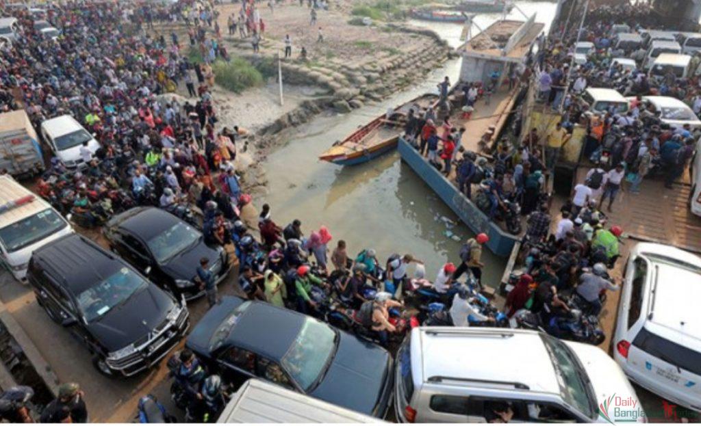 তবে যাত্রীদের চাপ বাড়ার সুযোগে বাড়তি ভাড়া আদায় করছে স্পিডবোটের চালকরা।দৌলতদিয়া-পাটুরিয়া নৌরুটে বাস ও পণ্যবাহী ট্রাকের ভিড় নেই বললেই চলে। তবে ছোট যানবাহনের চাপ রয়েছে। এই রুটে ২১টি ফেরি ও ৩৩টি লঞ্চ চলাচল করছে।ঢাকা-টাঙ্গাইল মহাসড়কে যানজটে নাকাল হচ্ছে উত্তরবঙ্গগামীরা।
