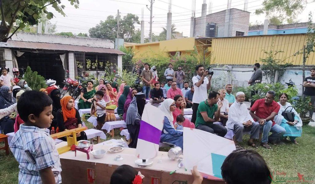 এক টুকরো সবুজের মাঝে ছড়িয়ে ছিটিয়ে আছে নাম-না-জানা নানা ফুলের গাছ, ঝাঁকে ঝাঁকে উঠছে কবুতর আর শেষ বিকেলের ঝিরিঝিরি হাওয়া এমনই চমৎকার পরিবেশে উদ্বোধনী আয়োজন সম্পন্ন হয়। পরিবেশবান্ধব এই আয়োজনে মাটির থালা, কলা পাতা ব্যবহার করা হয়। প্রথমেই কলাপাতায় রসের পিঠা দিয়ে সবাইকে আপ্যায়ন করা হয় এবং দেয়া হয় পরিবেশবান্ধব গাছ ও ঘুড়ি।