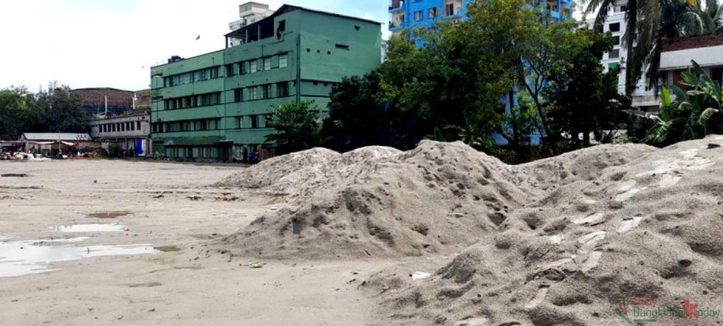 পরিবেশ সংরক্ষণ আইন অমান্য করে এভাবেই ঐতিহ্যবাহী শিক্ষা প্রতিষ্ঠান কুষ্টিয়া হাইস্কুলের শতবর্ষী পুকুর ভরাট করছে বলে অভিযোগ পাওয়া গেছে। আর এ অভিযোগের তীর স্কুলটির খোদ প্রধান শিক্ষক খলিলুর রহমান ও একটি প্রভাবশালী মহলের বিরুদ্ধে। দোকানপাটসহ নানা স্থাপনা নির্মাণের জন্য রাতের আঁধারে বালু ফেলে পুকুরের অর্ধেকের বেশি অংশ ভরাট করে ফেলেছেন তারা। সরেজমিনে গিয়ে দেখা গেছে এ চিত্র।