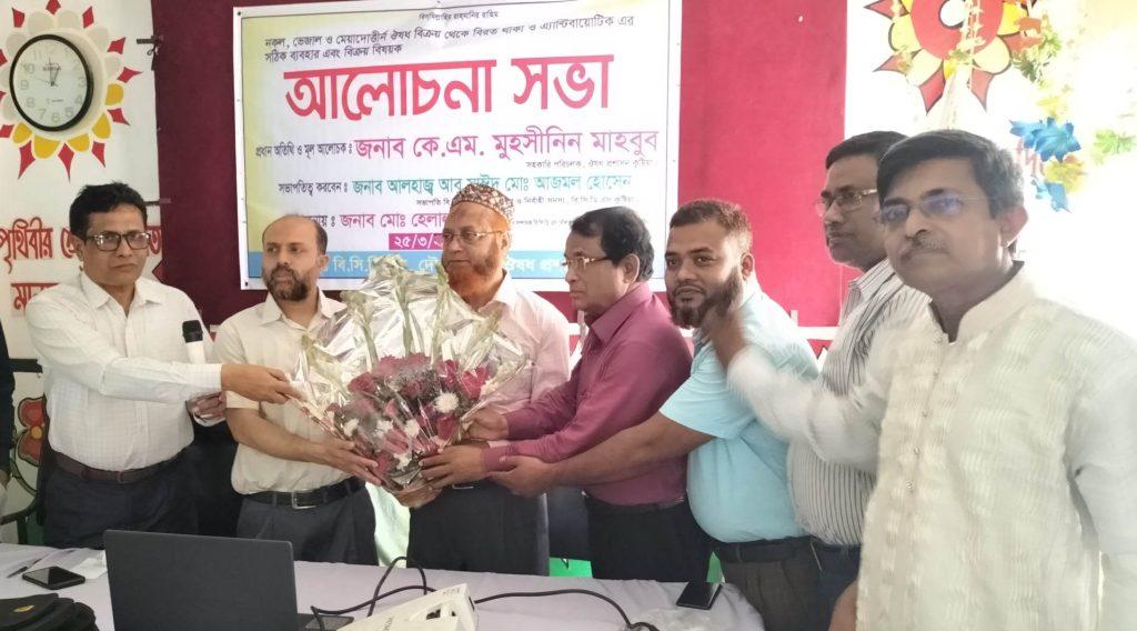 হেলাল উদ্দিন,দৌলতপুর (কুষ্টিয়া):- কুষ্টিয়ার দৌলতপুরে বি.সি.ডি.এস ও জেলা ঔষধ প্রশাসন অধিদপ্তরের যৌথ আয়োজনে নকল,ভেজাল ও মেয়াদোত্তীর্ণ ওষুধ বিক্রয় থেকে বিরত থাকা ও এ্যান্টিবায়োটিকের সঠিক ব্যবহার এবং বিক্রয় বিষয়ক আলোচনা সভা অনুষ্ঠিত হয়।