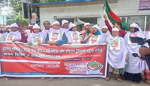 ৩ মাসের মধ্যে প্রমাণিত ধর্ষকের ফাঁসি ও ধর্ষণ-নারী নির্যাতন প্রতিরোধ ট্রাইবুনাল গঠনের দাবিতে প্রতিকি কাফন মিছিল ও প্রতিবাদ সমাবেশ অনুষ্ঠিত হয়েছে।