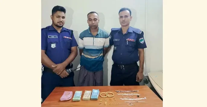 পুলিশ জানায়, চৌগাছা থানা পুলিশ অভিযান চালিয়ে বেশ কিছু স্বর্ণালঙ্কার ও নগদ টাকা উদ্ধার করা হয়। উদ্ধারকৃত মালামালের মধ্যে রয়েছে—১ জোড়া স্বর্ণের চুরি, ২ জোড়া কানের দুল, ৫টি স্বর্ণের আংটি, ১ জোড়া কানের বেলকুলি, ১ জোড়া স্বর্ণের কানের রিং, রুপার ২ জোড়া নুপুর, ২ জোড়া চুড়ি, ১টি আংটি, ১ জোড়া রুপার কানের রিং, ১ জোড়া রুপার চেইন এবং নগদ ৮০ হাজার টাকা। আটককৃত আসামির বিরুদ্ধে আইনানুগ ব্যবস্থা গ্রহণের পর তাকে আদালতে প্রেরণের প্রক্রিয়া চলছে।