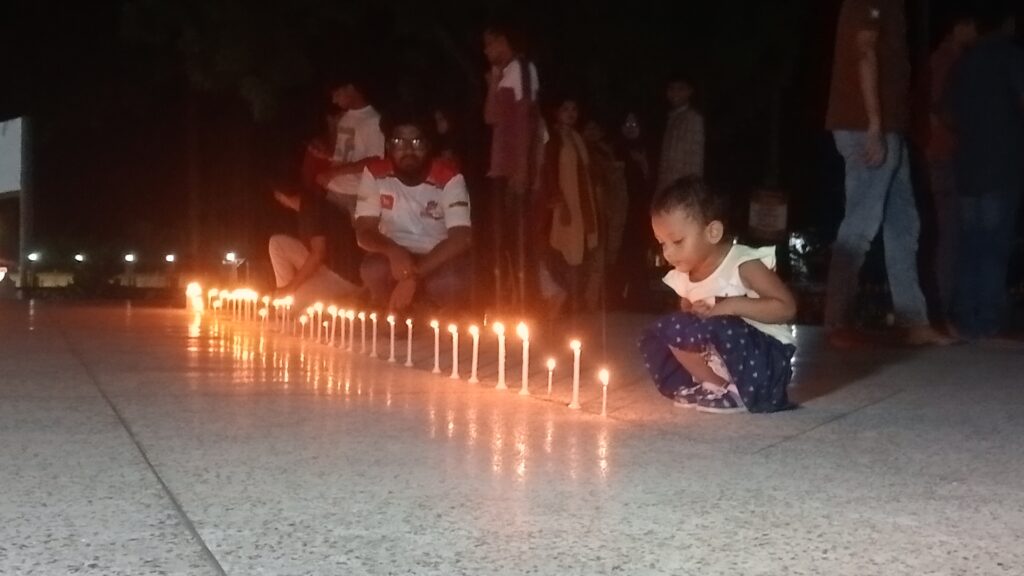 বলছিলাম, যশোর সদর উপজেলার খড়কি এলাকার নুসাইবা তাসনিয়া চেরি মনির (০২) কথা। মঙ্গলবার সন্ধ্যায় মাইলস্টোনে বিমান দূর্ঘটনায় নিহত বাচ্চাদের স্মৃতির প্রতি শ্রদ্ধা জানাতে যশোরের সাধারণ ছাত্র জনতা শহিদ মিনারে মোমবাতি প্রজ¦লন ও দোয়া করে।