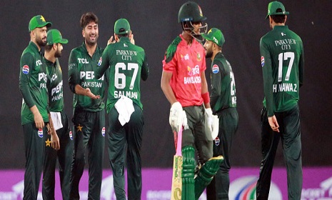 তিন ম্যাচ সিরিজের শেষ টি-টোয়েন্টিতে আজ বাংলাদেশকে ৭৪ রানে হারিয়েছে পাকিস্তান। মিরপুর শেরে বাংলা ক্রিকেট স্টেডিয়ামে টস জিতে পাকিস্তানকে ব্যাটিংয়ে পাঠান টাইগার অধিনায়ক লিটন কুমার দাস। আগে ব্যাট করতে নেমে নির্ধারিত ২০ ওভারে ৭ উইকেট হারিয়ে তারা সংগ্রহ করে ১৭৮ রান। যা তাড়া করতে নেমে ১০৪ রানেই গুটিয়ে যায় বাংলাদেশ।