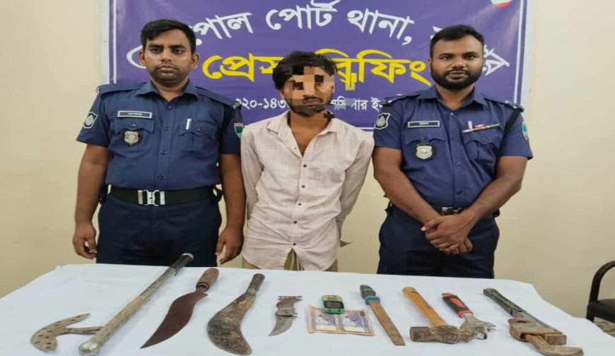 বেনাপোল থানা পুলিশের অভিযানে হাফ ডজন দেশি অ-স্ত্র, নগদ টাকাও চুরির সরঞ্জাম সহ প্রধান অভিযুক্ত যুক্ত আটক হয়েছে। আটককৃতের নাম সাজু । তিনি শার্শার ধলদার মনতাজ আলীর ছেলে। তথ্য মিলেছে, বেনাপোল পোর্ট থানার অফিসার ইনচার্জ রাসেল মিয়ার নেতৃত্বে পরিচালিত অভিযানে এসআই মিলন মোল্লা, এসআই খায়রুল ইসলাম তথ্য প্রযুক্তির সহায়তায় ২ আগস্ট রাতে তাকে আটক করেন। এদিন কাগমারী গ্রামের জেলামারির মাঠে একটি ঘেরের মধ্যে থেকে সাজুকে (২৭) আটক করা হয়। তার হেফাজত থেকে চোরাই কাজে ব্যবহৃত বিভিন্ন মালামাল, চোরাই মোবাইল এবং নগদ টাকা উদ্ধার করা হয়েছে। এছাড়াও ধৃত সাজুর হেফাজত থেকে হাফ ডজন দেশী অ-স্ত্র উদ্ধার করা হয়েছে। এগুলো এলাকার লোকজনকে ভয় ভীতি প্রদর্শন ও বিভিন্ন অপরাধমূলক কাজে ব্যবহার করে বেড়িয়েছে এই সাজু। উদ্ধারকৃত দেশি অস্ত্র সংক্রান্তে বেনাপোল পোর্ট থানায় অস্ত্র আইনে মামলা হয়েছে। যার নাম্বার ২। উল্লেখ্য , গত ৩১ জুলাই গভীর রাতে বেনাপোল পোর্ট থানার বড়আচঁড়া গ্রামের সাদীপুর রোডে শেখ সুপার মার্কেটের বিকাশ ব্যবসায়ী আক্তারুজ্জামানের ঘর থেকে নগদ টাকা মোবাইল ফোন নিয়ে যায় চোর চক্রের প্রধান সাজু। ভুক্তভোগী ব্যবসায়ী আখতারুজ্জামান বেনাপোলের বালুন্ডা গ্রামের টগর আলীর ছেলে। এ ব্যাপারে ২ আগস্ট বেনাপোল পোর্ট থানায় মামলা করেন ভুক্তভোগী আখতারুজ্জামান। চোর চক্রের প্রধান সাজুর কাছ থেকে উদ্ধার অস্ত্র ও মালামালের মধ্যে রয়েছে একটি বার্মিজ চাকু, একটি কাঠের বাট যুক্ত লোহার ছোরা, একটি চাইনিজ কুড়াল, একটি লোহার হাতলযুক্ত দা, চোরাই একটি বাটন মোবাইল ফোন, নগদ ২০ হাজার টাকা, চোরাই কাজে ব্যবহৃত একটি রেঞ্জ, একটি লোহার হাতুড়ি,একটি গ্যাসটন।