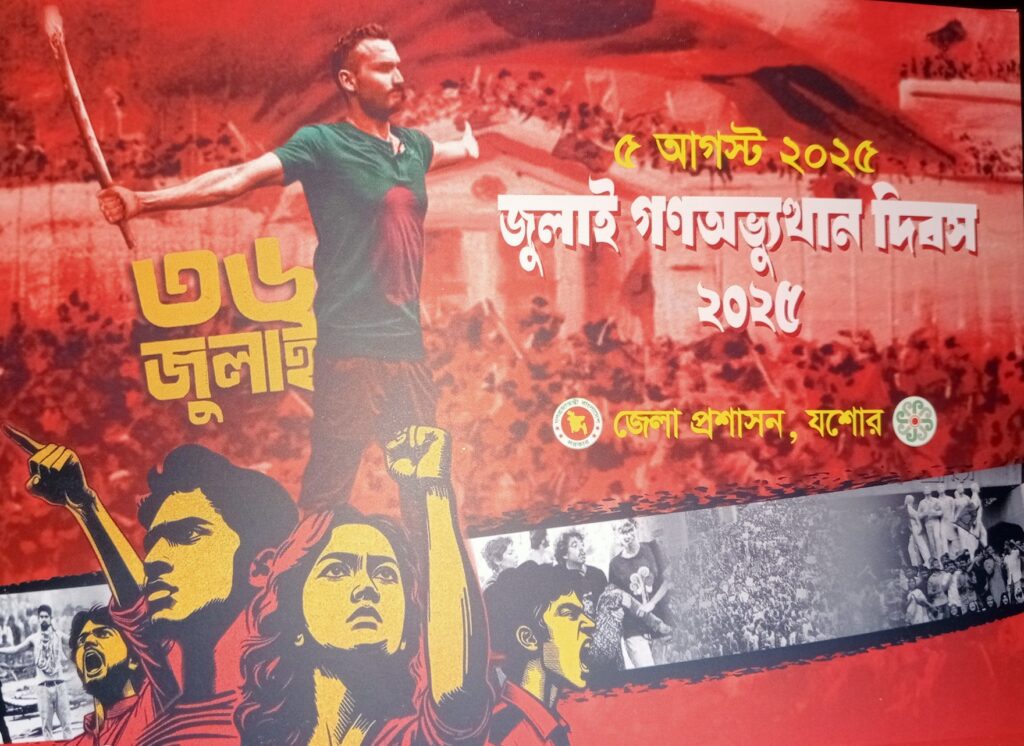 নতুন বাংলাদেশ গড়ার প্রত্যয়ে যাদের আত্মত্যাগ আজ আমাদের স্বপ্ন দেখাচ্ছে, তাঁদের অসামান্য ত্যাগ ও স্মৃতির প্রতি শ্রদ্ধা ও কৃতজ্ঞতা জ্ঞাপন এবং “জুলাই গণঅভ্যুত্থান দিবস ২০২৫” যথাযোগ্য মর্যাদার সাথে পালনের লক্ষ্যে জেলা প্রশাসন, যশোরের উদ্যোগে দিনব্যাপী অনুষ্ঠানমালার আয়োজন করা হয়েছে।
