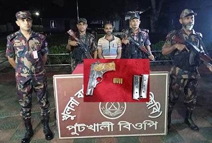 আটক আক্তারুল ইসলাম বেনাপোল পোর্ট থানার পুটখালী গ্রামের বাসিন্দা।পুটখালী বিজিবি ক্যাম্পের কমান্ডার সুবেদার সলিমুল্লাহ জানান, পুটখালী বিওপির একটি টহলদল সীমান্ত মেইন পিলার ১৭/০৭ এস এর ১৬২ আর পিলার হতে ৩০০ গজ বাংলাদেশ অভ্যন্তরে পুটখালী উত্তরপাড়া নামক স্থান ১টি ইতালির তৈরি পিস্তল, ২টি ম্যাগাজিন ও ৫ রাউন্ড গুলিসহ আসামিকে আটক করেন। আটক ব্যক্তিকে বেনাপোল পোর্ট থানায় সোপর্দ করা হয়েছে।