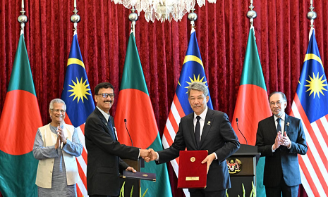 বাংলাদেশ ও মালয়েশিয়া পাঁচটি সমঝোতা স্মারক এবং তিনটি নোট বিনিময় সই করেছে। মঙ্গলবার (১২ আগস্ট) পুত্রজায়ায় প্রধান উপদেষ্টা অধ্যাপক ড. মুহাম্মদ ইউনূসের তিনদিনের মালয়েশিয়া সফরের প্রথম দিন এ চুক্তি সই হয়। এসময় উপস্থিত ছিলেন মালয়েশিয়ার প্রধানমন্ত্রী আনোয়ার ইব্রাহিম ও ড. ইউনূস।
