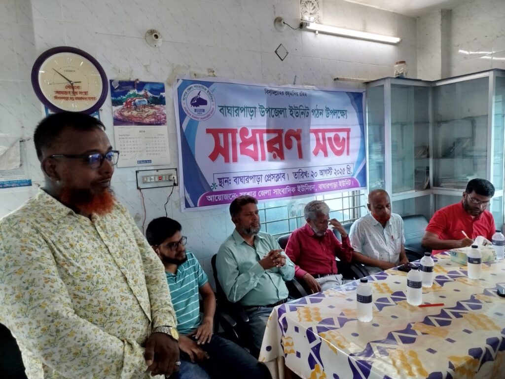 যশোর জেলা সাংবাদিক ইউনিয়নের তত্ত্বাবধানে বাঘারপাড়া ইউনিট গঠনের লক্ষ্যে একটি সাধারণ সভা অনুষ্ঠিত হয়েছে। বুধবার সকালে বাঘারপাড়ায় এই সভায় সাংবাদিক সমাজকে সুসংগঠিত করা এবং নীতি-নৈতিকতার ভিত্তিতে সংবাদ পরিবেশনের ওপর জোর দেওয়া হয়।