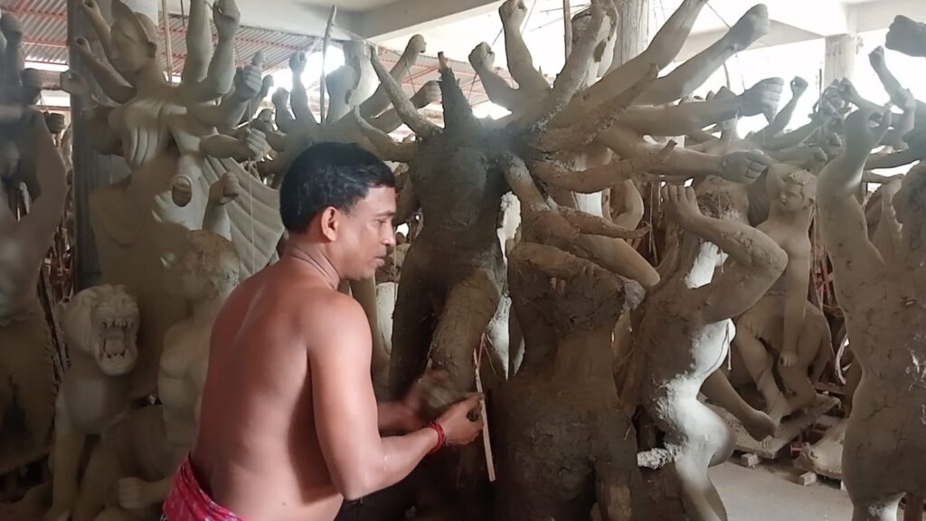 প্রতিবছর এই সময়ে পূজা মণ্ডপগুলোতে এক উৎসবমুখর পরিবেশ তৈরি হয়। এবারও তার ব্যতিক্রম নয়। সরেজমিনে দেখা যায়, সাতক্ষীরার আশাশুনি থেকে আসা শংকর মণ্ডল, জয়দেব মণ্ডলসহ প্রায় ৬ থেকে ৭ জন কারিগর দিন রাত কাজ করে চলেছেন। তাদের হাতের জাদুতে মাটি রূপ নিচ্ছে দুর্গা, লক্ষ্মী, সরস্বতী, গণেশ ও কার্তিকের মূর্তিতে।