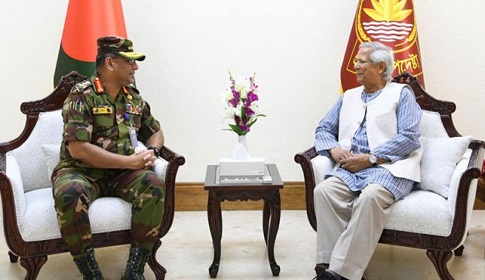 এ সময় প্রধান উপদেষ্টা বর্তমান পরিস্থিতিতে বেসামরিক প্রশাসনকে সহায়তার জন্য সেনাবাহিনীর ভূমিকা নিয়ে আলোচনা করেন। তিনি আইনশৃঙ্খলা রক্ষায় ধারাবাহিক অবদানের জন্য সেনাবাহিনীকে ধন্যবাদ জানান।
