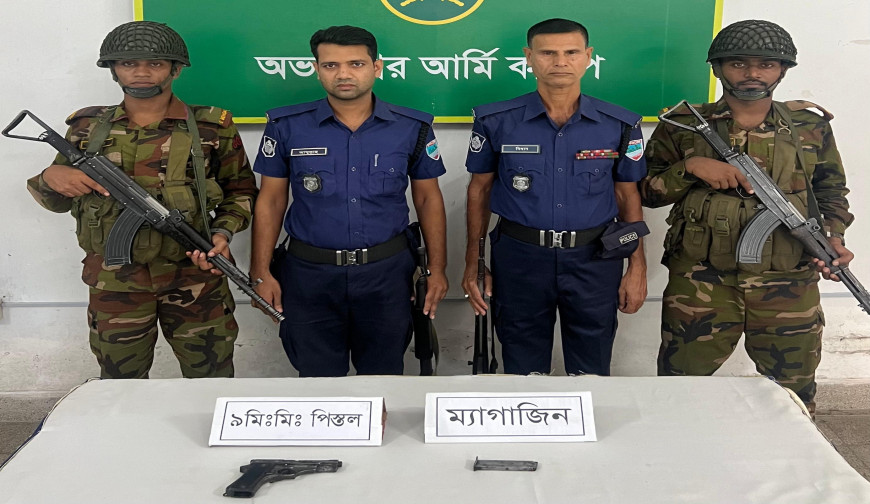 যশোরের অভয়নগর উপজেলার প্রেমবাগ ইউনিয়নের মহাজ্জেরপাড়া এলাকায় মাটি খুঁড়ে একটি নাইন এমএম পিস্তল এবং একটি খালি ম্যাগাজিন উদ্ধার করেছে অভয়নগর আর্মি ক্যাম্প ও অভয়নগর থানা পুলিশের একটি যৌথ দল। তবে এই ঘটনায় এখনো কাউকে গ্রেপ্তার করা যায়নি।