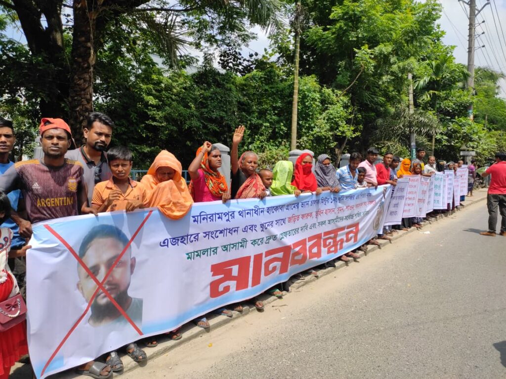 যশোরের মণিরামপুর উপজেলার হাকোবা গ্রামের ভ্যানচালক মিন্টু হোসেন হত্যার প্রধান আসামি বড় সাব্বিরসহ জড়িত সকলের সর্বোচ্চ শাস্তির দাবিতে এবং আসামীদের অব্যাহত হুমকির প্রতিবাদে মানববন্ধন কর্মসূচি পালন করেছে নিহতের পরিবার। মঙ্গলবার সকালে যশোর প্রেস ক্লাবের সামনে এই মানববন্ধন অনুষ্ঠিত হয়।