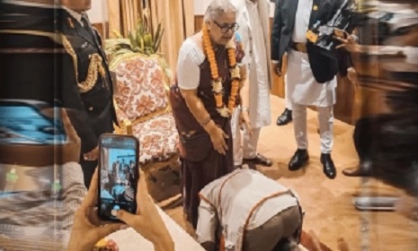 শপথ নেওয়ার পর আবেগঘন এক মুহূর্তে প্রধানমন্ত্রী কার্কির পা ছুঁয়ে আশীর্বাদ নেন ‘জেন-জি বিপ্লবের’ নেতৃত্ব দেওয়া তরুণ নেতা সুদান গুরুং।