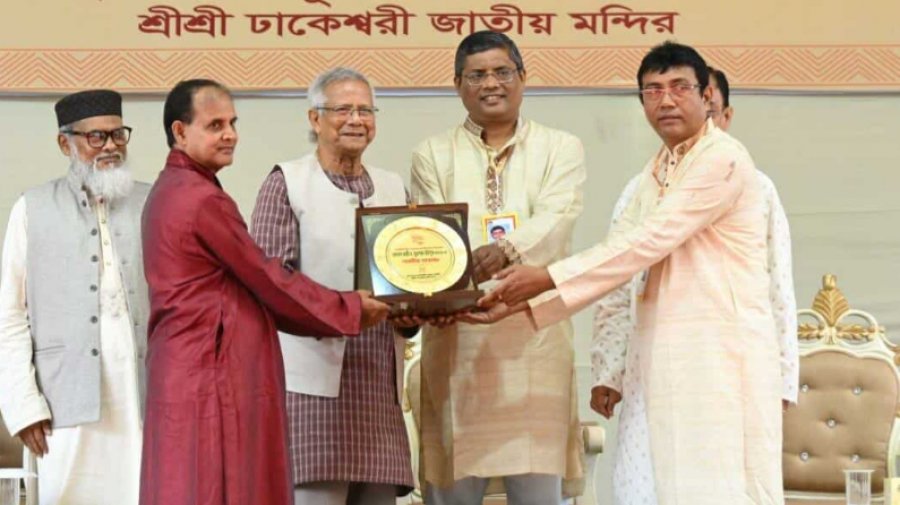 মন্দির পরিদর্শন শেষে প্রধান উপদেষ্টা সনাতন হিন্দু ধর্মাবলম্বীদের সঙ্গে এক শুভেচ্ছা বিনিময় সভায় যোগ দেন প্রধান উপদষ্টা।