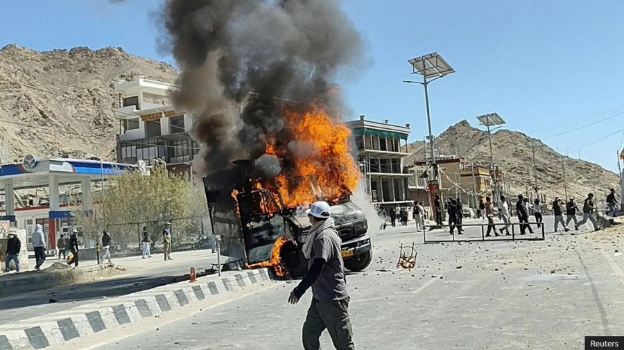 ভারতের সীমান্তবর্তী অঞ্চল লাদাখের রাজধানী লেহ’তে পুলিশ ও বিক্ষোভকারীদের মধ্যে সহিংস সংঘর্ষে অন্তত চারজন নিহত হয়েছে। এরপর ভারতীয় নিরাপত্তা বাহিনী সেখানে কারফিউ জারি করেছে। অঞ্চলটিকে আলাদা রাজ্যের মর্যাদা দেওয়া এবং ষষ্ঠ তফসিলে অন্তর্ভুক্তির দাবিতে বুধবার (২৪ সেপ্টেম্বর) সেখানে ব্যাপক বিক্ষোভ হয়। ভারতের সংবাদমাধ্যম ইন্ডিয়া টুডে ও ব্রিটিশ সংবাদমাধ্যম বিবিসি এ খবর জানিয়েছে।