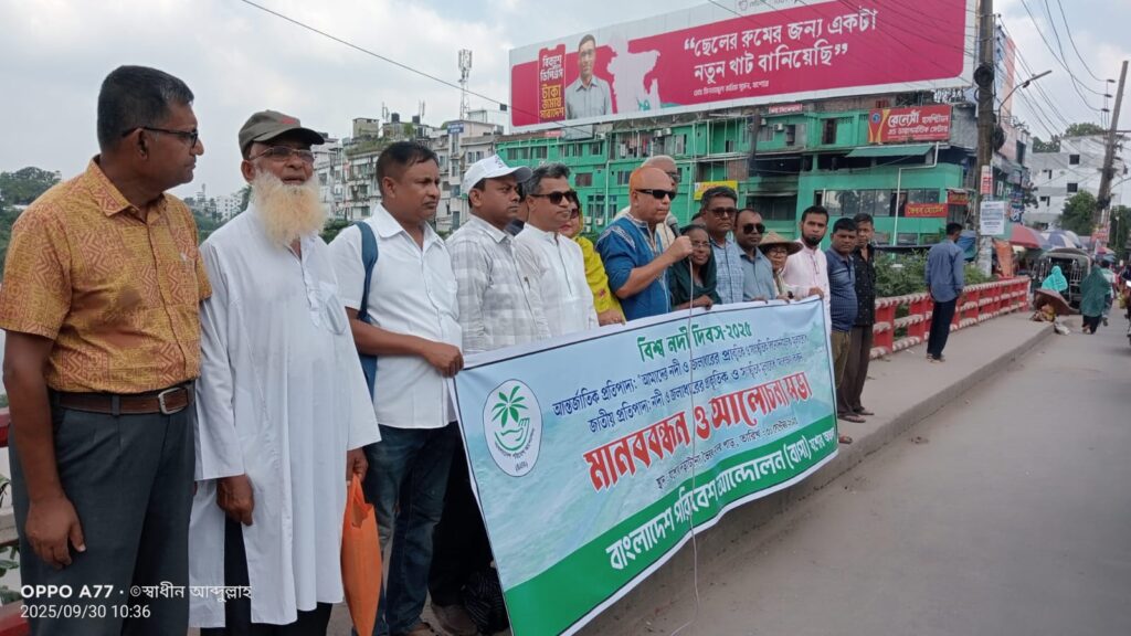 ‘নদী ও জলাধারের প্রাকৃতিক ও সাংস্কৃতিক মূল্যবোধ সংরক্ষণ করুন’—এই প্রতিপাদ্যকে সামনে রেখে গত বিশ্ব নদী দিবস উপলক্ষে যশোরে পালিত হলো সচেতনতামূলক নানা কর্মসূচি। মঙ্গলবার সকাল সাড়ে ১০ টায় ভৈরব নদের সেতুর ওপর বাংলাদেশ পরিবেশ আন্দোলন (বাপা) এর উদ্যোগে একটি মানববন্ধন ও আলোচনা সভা অনুষ্ঠিত হয়।