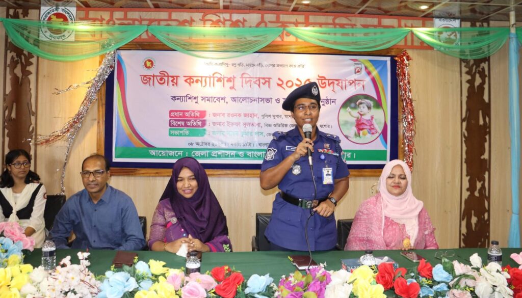 পুলিশ সুপার রওনক জাহান আরও বলেন, সমাজে কন্যাশিশুদের প্রতি এক ধরণের বৈষম্য করা হয়। বলা হয়ে থাকে কন্যারা ঘরের মধ্যে থাকবে বাইরে, বাইরে কেন। পরিবার থেকেই কন্যাশিশুরা বৈষম্যের শিকার হন। পরিবারে একজন পুত্র যেসব সুযোগ-সুবিধা পায়, অনেক সময় কন্যা তার অর্ধেকও পায় না। কন্যারা বেশির ভাগ অবহেলার শিকার হয়। লিঙ্গ বৈষম্য না করে সবাইকে সমান সুযোগ-সুবিধার আওতায় আনা প্রয়োজন। অভিভাবকরা সচেতন হলে কন্যাশিশুরা বৈষম্যের শিকার হবে না। অভিভাবকদের মন থেকে বৈষম্য দূর করতে হবে। তবেই প্রতিটি কন্যাশিশু মেধা, মননের বিকাশ ঘটাতে পারবে।