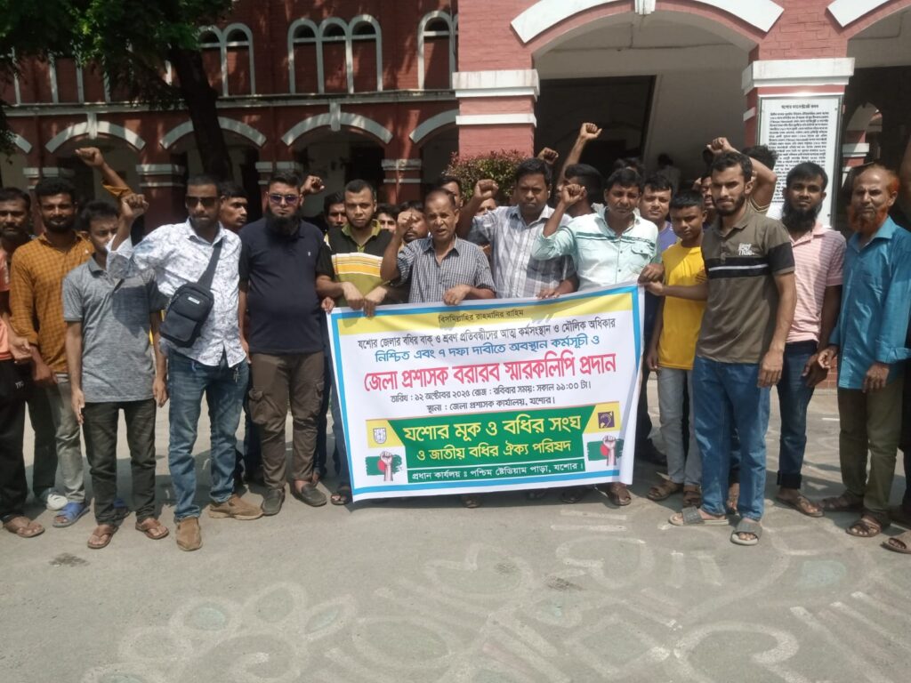 যশোরে নিজস্ব কার্যালয়ের জন্য সরকারি জমি বরাদ্দ, আত্মকর্মসংস্থান ও আবাসন নির্মাণসহ ৭ দফা দাবিতে জেলা প্রশাসকের কাছে স্মারকলিপি প্রদান করেছে জেলার বধির শ্রবণ প্রতিবন্ধী জনগোষ্ঠী। রবিবার সকালে যশোর মুখ ও বধির সংঘরে নেতা কর্মীরা জেলা প্রশাসকের কার্যালয়ে এই স্মারকলিপি দেন।