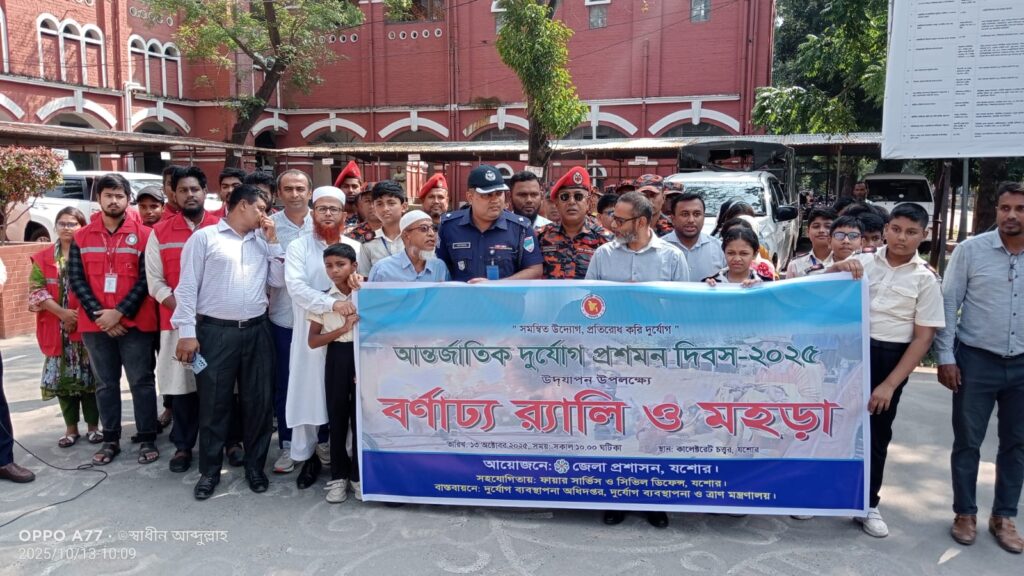 “সমন্বিত উদ্যোগ, প্রতিরোধ করি দুর্যোগ” – এই প্রতিপাদ্যকে সামনে রেখে যশোরে আন্তর্জাতিক দুর্যোগ প্রশমন দিবস উদযাপন করা হয়েছে। দিবসটি উপলক্ষ্যে সোমবার সকালে কালেক্টরেট ভবন চত্বরে যশোর জেলা প্রশাসনের আয়োজনে এক বর্ণাঢ্য র্যালি ও মহড়া করা হয়।