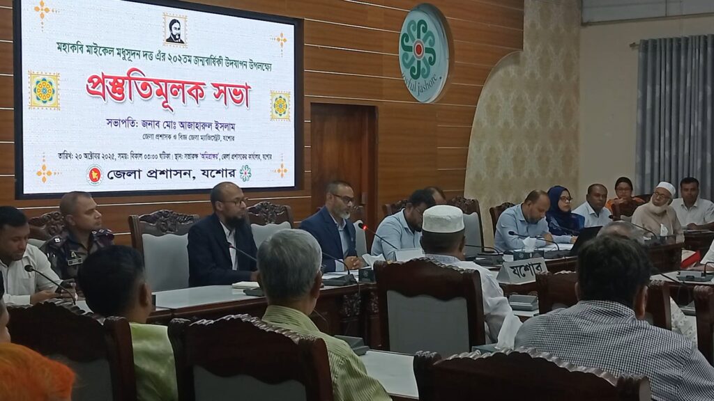 মহাকবি মাইকেল মধুসূদন দত্তের ২০২ তম জন্মবার্ষিকী উদযাপন উপলক্ষে প্রস্তুতিমূলক সভা অনুষ্ঠিত হয়েছে। সোমবার বিকেলে জেলা প্রশাসকের সম্মেলন কক্ষে জেলা প্রশাসন এই সভার আয়োজন করে । সভায় মধুমেলার সময় নির্ধারণ নিয়ে বিভিন্ন রাজনৈতিক ও সামাজিক সংগঠনের প্রতিনিধি, সাংবাদিক ও সাংস্কৃতিক ব্যক্তিত্বদের মধ্যে দীর্ঘ আলোচনা হয়।