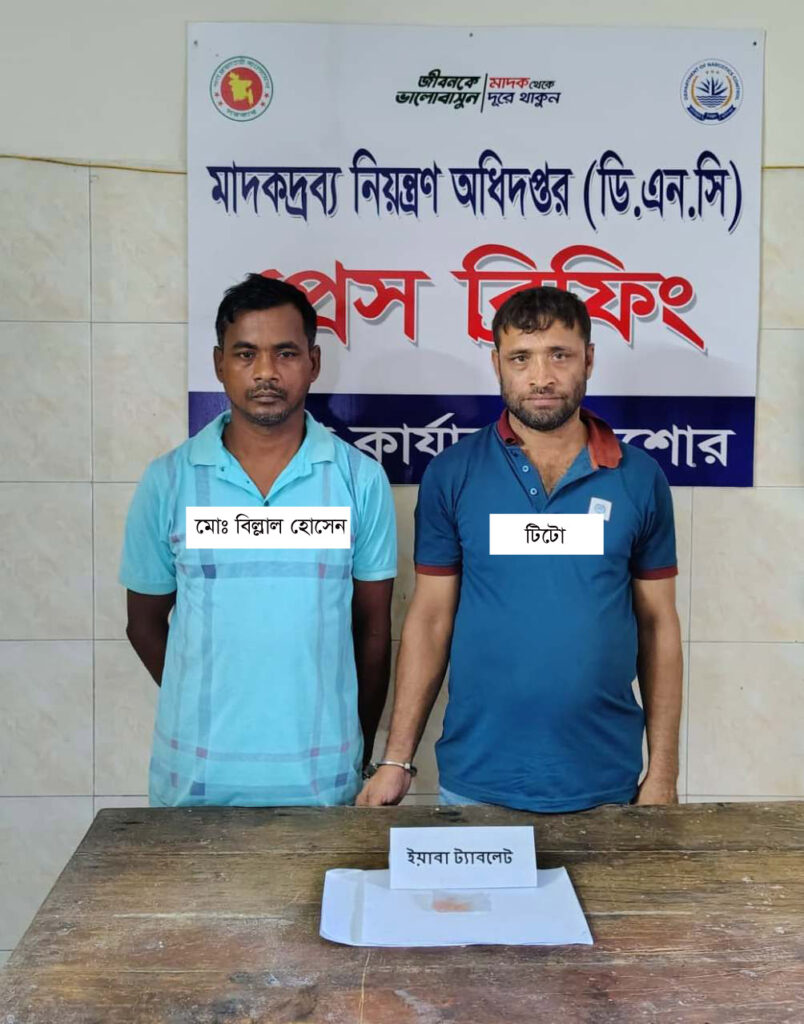 মাদকদ্রব্য নিয়ন্ত্রণ অধিদপ্তর (ডিএনসি) যশোরের বিশেষ অভিযানে ৩০ পিস ইয়াবা ট্যাবলেটসহ দুই ব্যক্তিকে গ্রেপ্তার করা হয়েছে। বুধবার দুপুরে যশোর জেলার কোতোয়ালী মডেল থানা এলাকার আরবপুর ইউনিয়নের বাঁশবাড়িয়া কারিকরপাড়া এলাকায় এ অভিযান চালানো হয়।