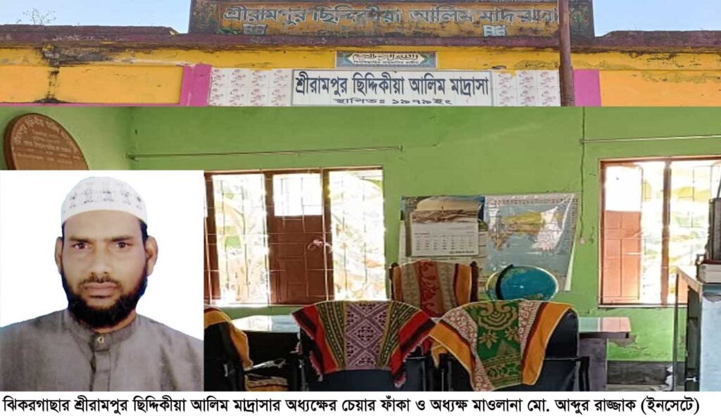 যশোরের ঝিকরগাছা উপজেলার ৬নং ঝিকরগাছা ইউনিয়নের শ্রীরামপুর ছিদ্দিকীয়া আলিম মাদ্রাসার অধ্যক্ষ মাওলানা মো. আব্দুর রাজ্জাকের বিরুদ্ধে গুরুতর অভিযোগ উঠেছে। অভিযোগ, তিনি মাদ্রাসায় নিয়মিত উপস্থিত না থেকেও হাজিরা খাতায় নিয়মিত সই দেখিয়ে মাসের পর মাস বেতন-ভাতা তুলে নিচ্ছেন। অভিযুক্ত অধ্যক্ষ একই ইউনিয়নের লাউজানী গ্রামের বাসিন্দা।