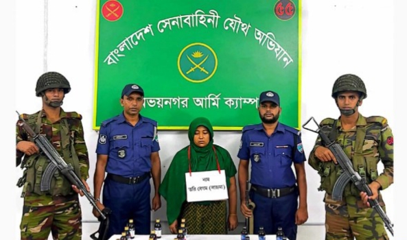 যশোরের অভয়নগর উপজেলায় সেনা ও পুলিশের যৌথ অভিযানে ২২ বোতল ফেনসিডিলসহ তরি বেগম ওরফে নাজমা (৩৫) নামে এক নারী মাদক ব্যবসায়ীকে আটক করা হয়েছে। আটক নাজমা ওই এলাকার চিহ্নিত মাদক কারবারি বলে জানা গেছে।