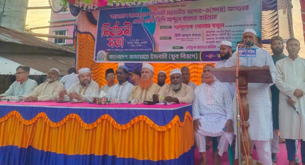 যশোর সদর উপজেলার রূপদিয়া বাজারে জামায়াতে ইসলামী মনোনীত সংসদ সদস্য পদপ্রার্থী আব্দুল কাদের-এর পক্ষে এক নির্বাচনী জনসভা ও মিছিল অনুষ্ঠিত হয়েছে। জামায়াতে ইসলামী সদর উপজেলা যুব বিভাগের উদ্যোগে শুক্রবার বিকেল ৪টায় রূপদিয়া ধানহাটায় এই জনসভা অনুষ্ঠিত হয়।
