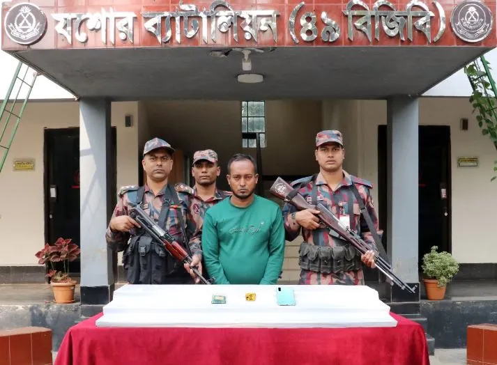 যশোর ব্যাটালিয়ন (৪৯ বিজিবি) সূত্রে জানা যায়, গোপন সংবাদের ভিত্তিতে আজ সোমবার সকাল সাড়ে ১১টার দিকে ৪৯ বিজিবি’র একটি টহলদল যশোর সদর উপজেলার বাউলিয়া বাজারের পাকা রাস্তার ওপর অভিযান চালায়। এ সময় টহল দলটি ইমরান হোসেনকে আটক করে।