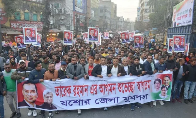 তারেক রহমান, বাংলাদেশ জাতীয়তাবাদী দল (বিএনপি)–এর ভারপ্রাপ্ত চেয়ারম্যান, তাঁর আগমনকে স্বাগত জানিয়ে যশোর জেলা যুবদলের উদ্যোগে শুভেচ্ছা মিছিল অনুষ্ঠিত হয়েছে।