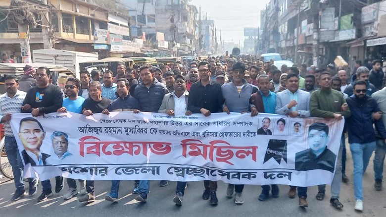 ঢাকা মহানগর স্বেচ্ছাসেবক দলের সাবেক সদস্য সচিব আজিজুর রহমান মুসাব্বির হত্যার প্রতিবাদে কেন্দ্রীয় কর্মসূচির অংশ হিসেবে যশোরে বিক্ষোভ মিছিল ও পথসভা করেছে জেলা স্বেচ্ছাসেবক দল। শনিবার দুপুরে শহরের মনিহার চত্বর থেকে মিছিলটি শুরু হয়ে গুরুত্বপূর্ণ সড়ক প্রদক্ষিণ শেষে চৌরাস্তায় গিয়ে সংক্ষিপ্ত পথসভার মাধ্যমে শেষ হয়।