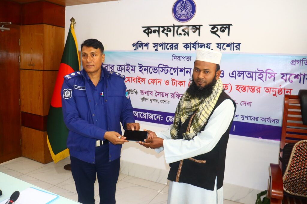 যশোর সাইবার ক্রাইম ইনভেস্টিগেশন সেল ও এলআইসি (লিগ্যাল ইনভেস্টিগেশন সেল) এর উদ্যোগে উদ্ধারকৃত হারানো মোবাইল ফোন ও প্রতারণার মাধ্যমে আত্মসাৎকৃত নগদ অর্থ ভুক্তভোগীদের মাঝে হস্তান্তর করা হয়েছে। বুধবার দুপুরে যশোর জেলা পুলিশ সুপারের কার্যালয়ের কনফারেন্স রুমে ডিসেম্বর মাসে উদ্ধারকৃত এসব মোবাইল ও নগদ অর্থ হস্তান্তর করা হয়।
