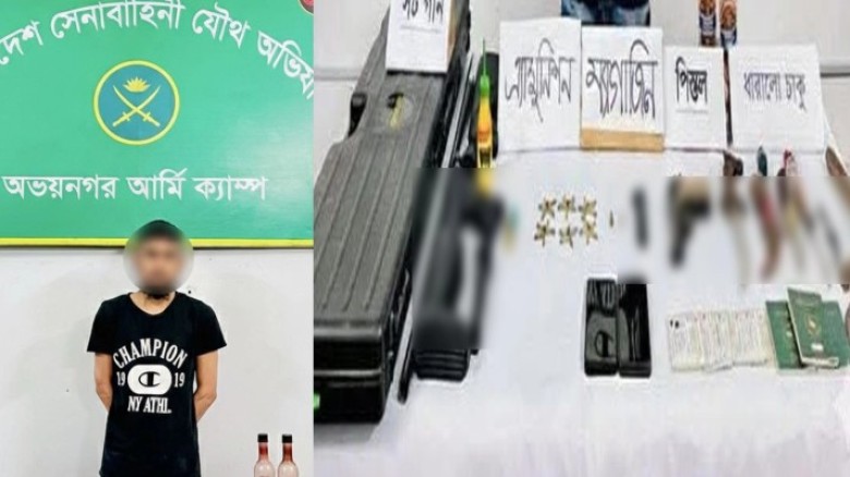 যশোরের অভয়নগর উপজেলায় যৌথবাহিনীর বিশেষ অভিযানে আগ্নেয়াস্ত্র, বিপুল পরিমাণ গোলাবারুদ ও দেশীয় অস্ত্রসহ রাকিবুল সরদার (২৭) নামে এক যুবককে আটক করা হয়েছে।