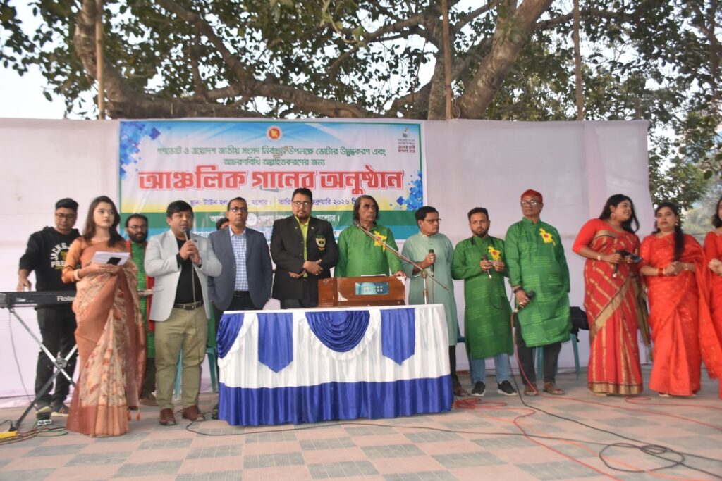 যশোর আসন্ন গণভোট ও ত্রয়োদশ জাতীয় সংসদ নির্বাচন উপলক্ষে সাধারণ ভোটারদের সচেতন ও উদ্বুদ্ধ করার লক্ষ্যে আঞ্চলিক গানের অনুষ্ঠান করা হয়েছে। সোমবার বিকেল থেকে রাত ৮টা পর্যন্ত যশোর শহরের ঐতিহাসিক মুন্সী মেহেরুল্লাহ ময়দানের (টাউন হল মাঠ) রওশন আলী মঞ্চে এই সাংস্কৃতিক অনুষ্ঠানের আয়োজন করে যশোর জেলা তথ্য অফিস।