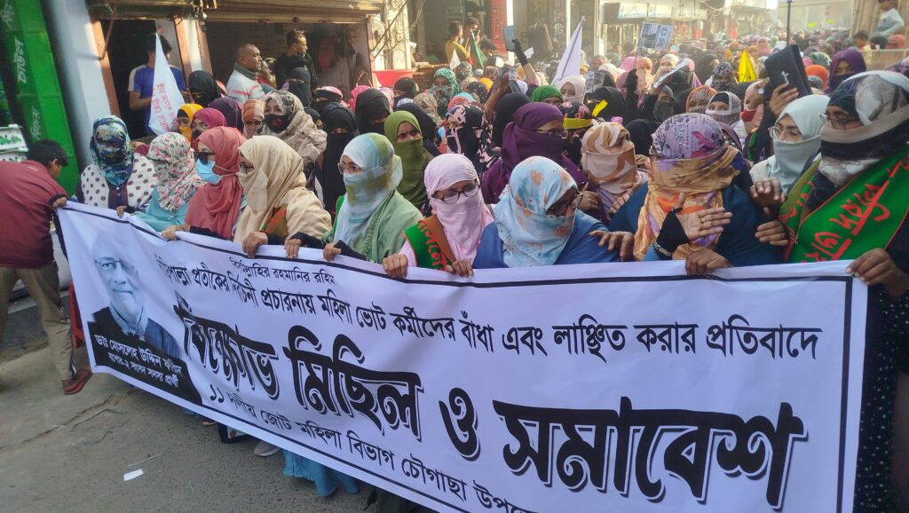 জানা গেছে, চৌগাছা উপজেলার ধূলিয়ানী ইউনিয়নের ২নং ওয়ার্ডের মুক্তারপুর গ্রামে দাঁড়িপাল্লা প্রতীকের পক্ষে সাধারণ নারীদের কাছে ভোট চাইতে গেলে জামায়াতে ইসলামীর নারী নেতা-কর্মীরা হামলার শিকার হন। গত সোমবার (২ ফেব্রুয়ারি) দুপুরে ধানের শীষ প্রতীকের প্রার্থীর সমর্থকরা অতর্কিতভাবে তাদের ওপর হামলা চালায় বলে অভিযোগ করা হয়েছে।
