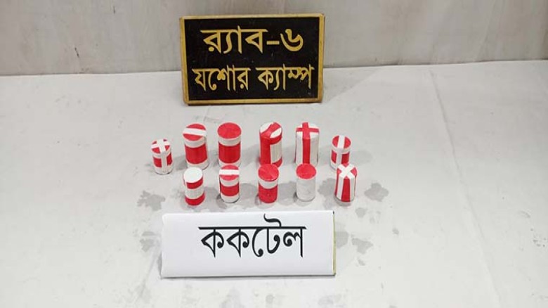 র্যাব সূত্র জানায়, গোপন সংবাদের ভিত্তিতে যশোর রেলওয়ে স্টেশনের সামনের মোবাইল টাওয়ার সংলগ্ন বস্তি এলাকায় অভিযান পরিচালনা করা হয়। অভিযান চলাকালে ওই এলাকার একটি পরিত্যক্ত রেলওয়ে কোয়ার্টারের বারান্দার মেঝেতে কসটেপ দিয়ে মোড়ানো অবস্থায় সন্দেহজনক বস্তু দেখতে পায় র্যাব সদস্যরা। পরে তল্লাশি চালিয়ে সেখান থেকে ১১টি ককটেল উদ্ধার করা হয়।