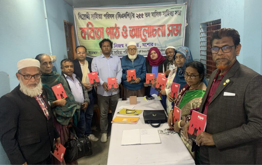 বিদ্রোহী সাহিত্য পরিষদ (বিএসপি) যশোরের ২৫৫তম মাসিক সাহিত্যসভা ও বিদ্রোহী বিশেষ সংখ্যার মোড়ক উন্মোচন অনুষ্ঠিত হয়েছে। শুক্রবার সকাল ১০টায় যশোর শহরের পোস্ট অফিস পাড়ায় সংগঠনের নিজস্ব কার্যালয়ে এ অনুষ্ঠানের আয়োজন করা হয়।