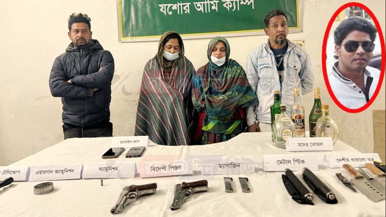 যশোর শহরের ঢাকারোড এলাকায় যুবলীগ নামধারী আলোচিত ক্যাডার আরিফের বাড়িতে মধ্যরাতে যৌথ বাহিনী অভিযান চালিয়ে বিদেশি অস্ত্র, ধারালো অস্ত্র ও মদসহ বিপুল পরিমাণ সরঞ্জাম উদ্ধার করেছে। তবে অভিযানের আগেই পালিয়ে যায় মূল অভিযুক্ত আরিফ।