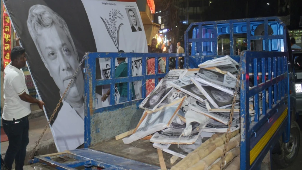 নির্বাচনী এলাকায় বিভিন্ন স্থানে টানানো ব্যানার, ফেস্টুন ও পোস্টার খুলে পিকআপ ভ্যানের মাধ্যমে সেগুলো অপসারণ করা হয়। এ সময় দলীয় নেতাকর্মীরা উপস্থিত ছিলেন।