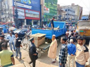 পবিত্র রমজান মাসকে সামনে রেখে শহরকে যানজটমুক্ত রাখতে ও সাধারণ মানুষের নির্বিঘ্ন চলাচল নিশ্চিত করতে উচ্ছেদ অভিযান শুরু করেছে যশোর পৌরসভা।