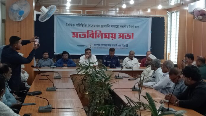 যশোর শহরে বিদ্যুৎ ব্যবহারে সাশ্রয়ী ও সচেতনতা বাড়াতে “বিদ্যুৎ সাশ্রয়ে ব্যবসায়ীদের করণীয়” শীর্ষক এক মতবিনিময় সভা অনুষ্টিত হয়েছে। বৃহস্পতিবার দুপুরে যশোর চেম্বার অব কমার্স অ্যান্ড ইন্ডাস্ট্রির উদ্যোগে চেম্বারের নিজস্ব কার্যালয়ে এই সভা অনুষ্ঠিত হয়। সভায় জেলার বিভিন্ন ব্যবসায়ী সংগঠনের প্রতিনিধিরা অংশ নেন। তবে, রিকসা ইজিবাইক মালিক সমিতির দায়িত্বশীল কোনো ব্যক্তির বক্তব্য পাওয়া যায়নি। শহরে বিদ্যুতের সিংহভাগ বিদ্যুৎ ব্যবহৃত হচ্ছে রিকসা ও ইজিবাইকে। অনেকে গ্যারেজ করে রিকসা ইজিবাইকের ব্যবসা চালিয়ে যাচ্ছে। আবার অনেকে ২ থেকে ৫টা ইজিবাইক রিকসা বাসা বাড়িতে চার্জ করে রাস্তায় ভাড়া দিয়ে দিচ্ছেন।