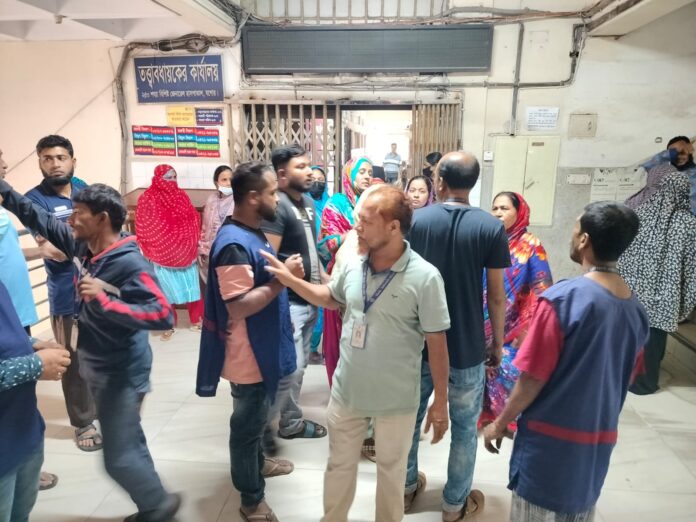 শনিবার সকাল সাড়ে ১১টার দিকে হাসপাতালের প্রশাসনিক ভবনে তত্ত্বাবধায়কের কক্ষের সামনে প্রায় ৩০ থেকে ৩৫ জন স্বেচ্ছাসেবক শান্তিপূর্ণ অবস্থান কর্মসূচি পালন করেন। স্বেচ্ছাসেবক মফিজুল হক সাগরের নেতৃত্বে এ কর্মসূচি অনুষ্ঠিত হয়।