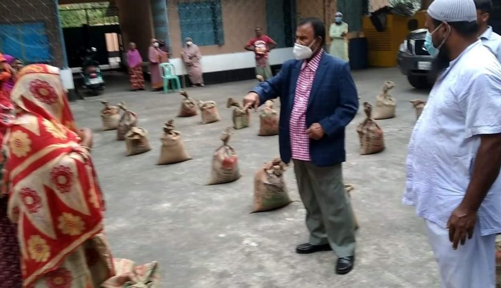 গত বৃহস্পতিবার সকালে ঢাকা থেকে এসেই তার জন্মভূমি আলাউদ্দিন নগরের গরিব দুঃখীদের মাঝে চাউল, ডাউল, তেল, আটা, লবণ, আলু সহ নিত্য প্রয়োজনীয় খাদ্য সামগ্রী বস্তায় ভরে তা বিতরণ করেন। এ সময় সময় উপস্থিত ছিলেন এলাকার গণ্যমান্য ব্যক্তিবর্গ সহ পরিবারের সকল সদস্যবৃন্দ।
